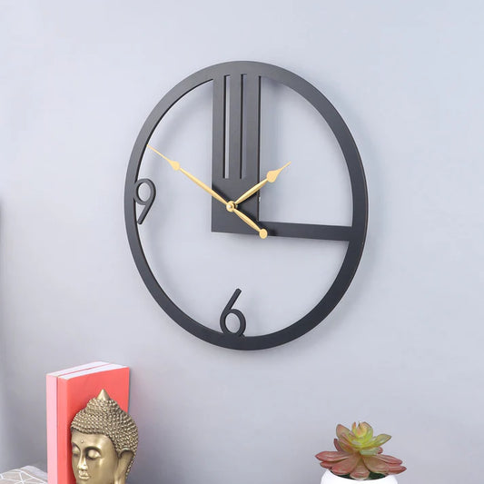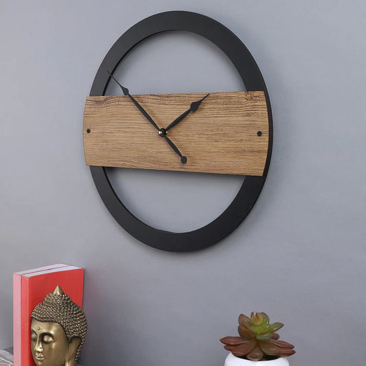 Round Black Framed Engineered Wood Wall Clock with Leather coating