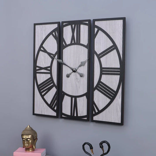 Black and Grey Engineered Wood Roman Numeral Wall Clock|| Wall Clock