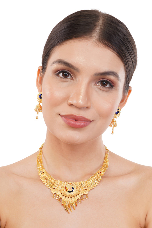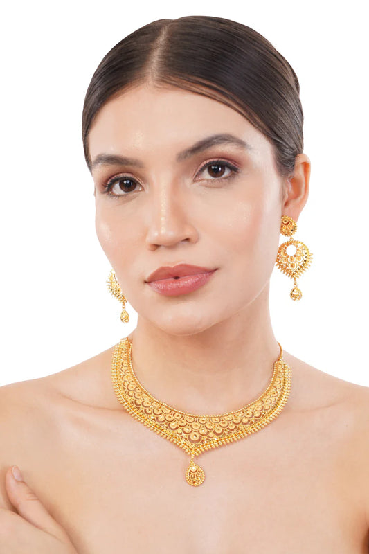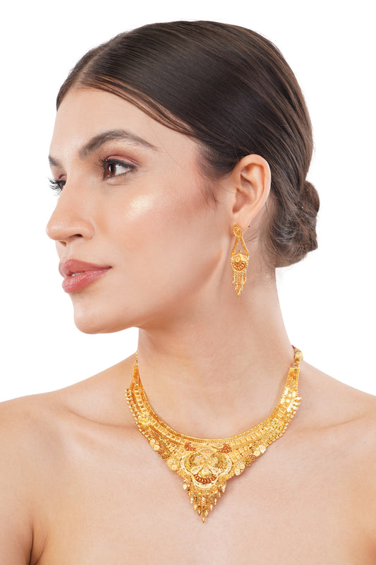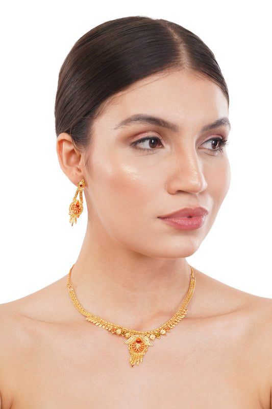 Sparkling 1 Gram Gold Plated Necklace and Earring Set