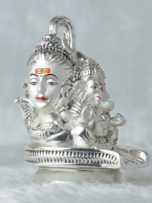 Silver Plated Antique Finish Shivling with Ganesha, Parvati Idol