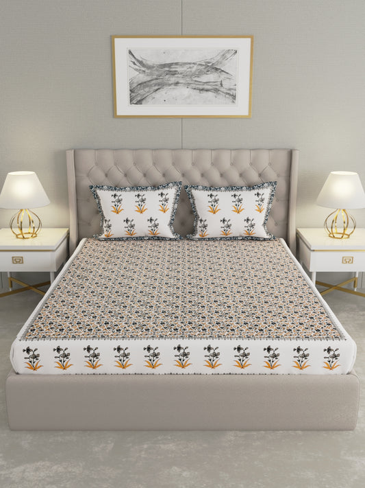 Pure Organic Cotton Bedsheet Hand Block Printed King Size with Pillow Covers 340 TC