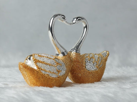 Gold and Silver Plated Heart Shape Love Birds Sculpture
