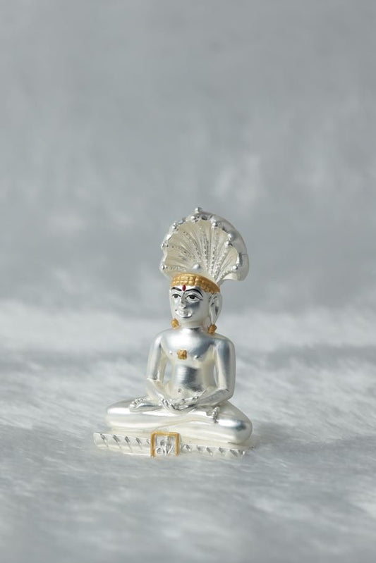 Silver Plated Parshvanatha Idol with Matt Finish and Golden Border