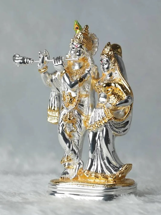 Exquisite Gold & Silver Plated Radha Krishna Statue