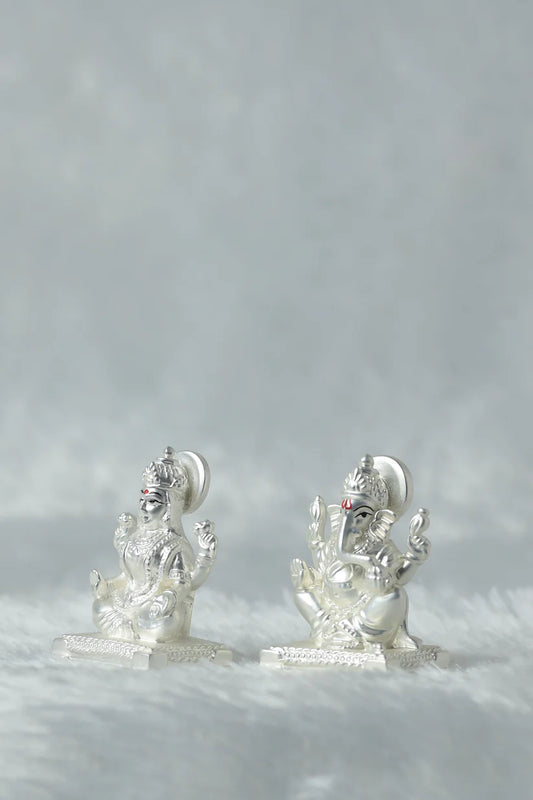 Silver Plated Matt Finish Laxmi Ganpati Idol Set