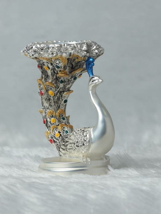 Elegant Silver Plated Antique Matt Finish Peacock Candle Holder