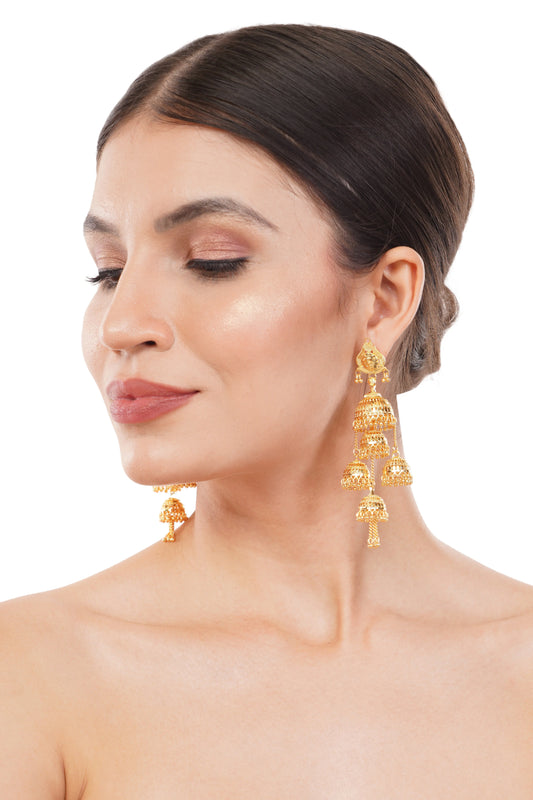 1 Gram Gold Filigree Triple Layer Earrings Set