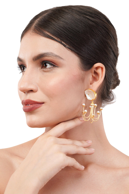 1 Gram Gold Plated Pearl Chandelier Earrings