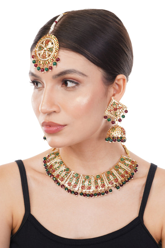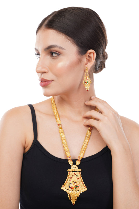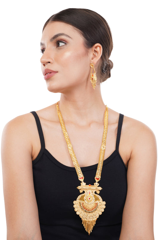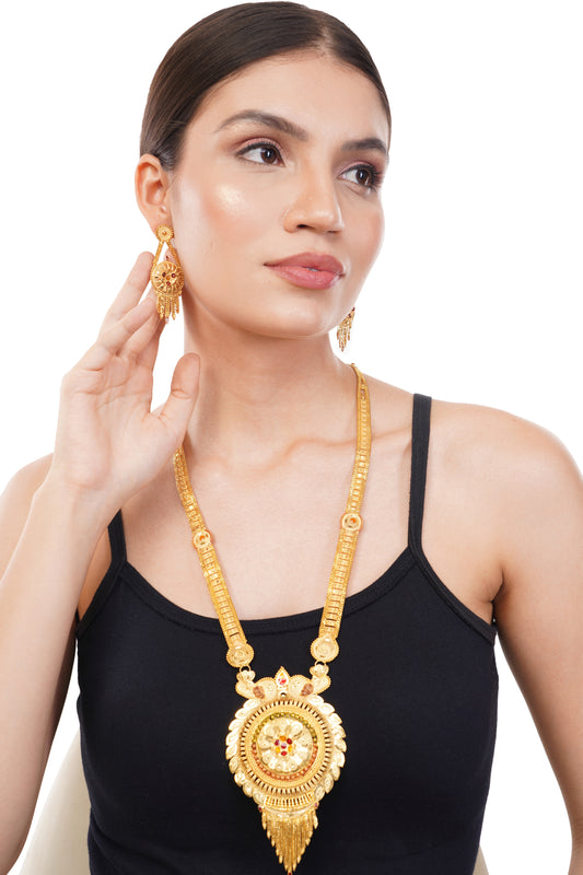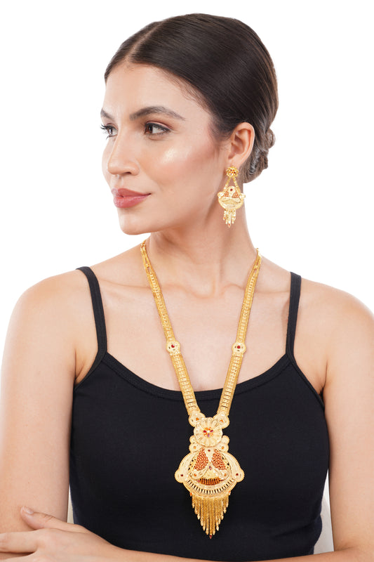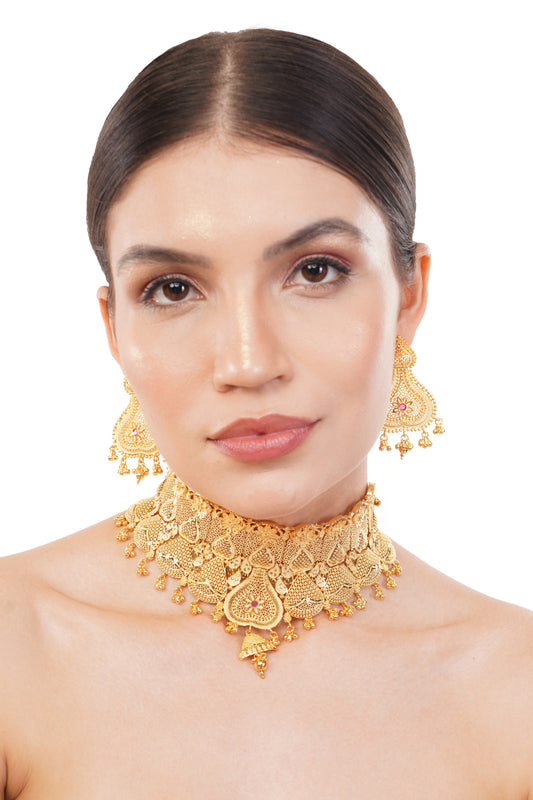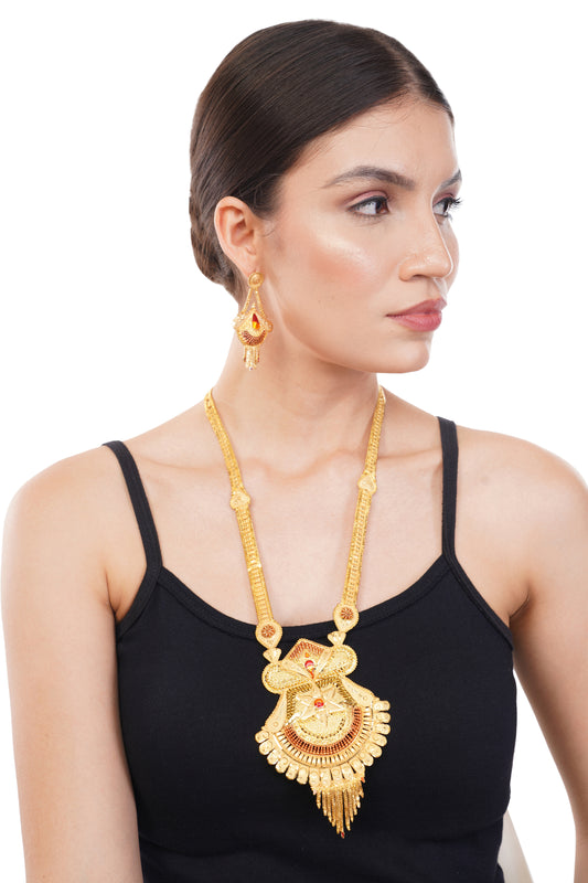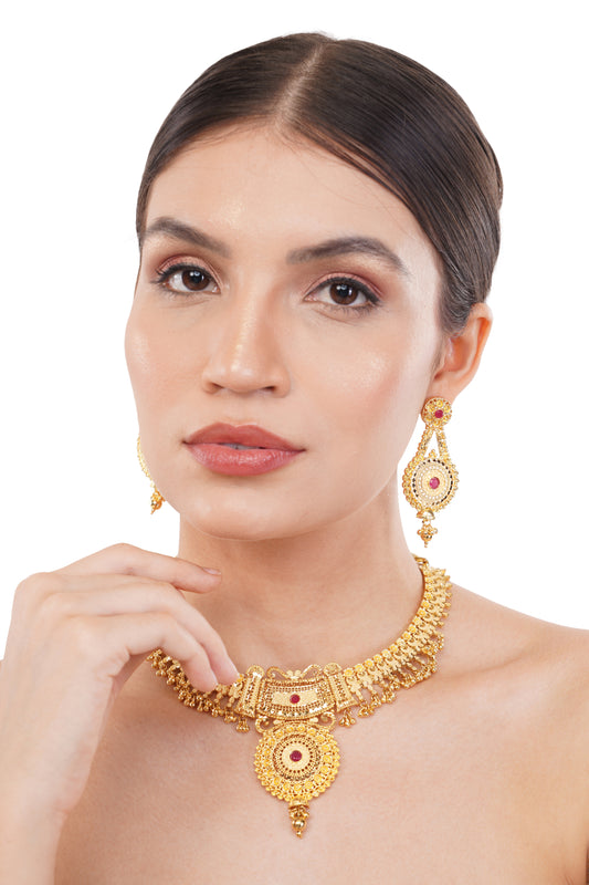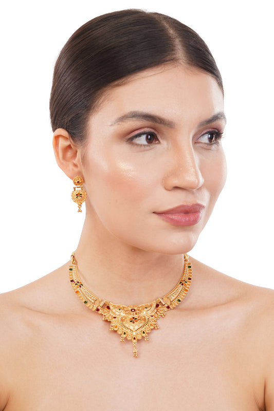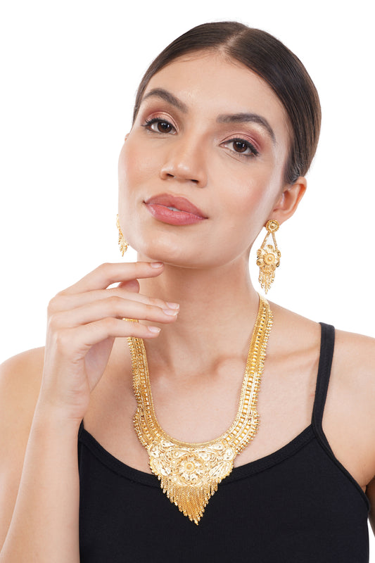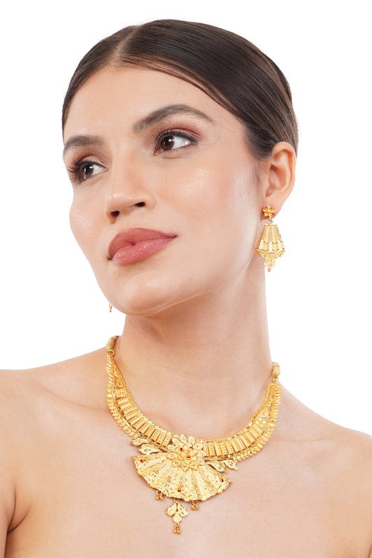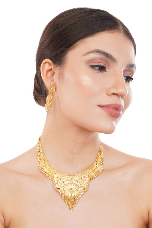 Sparkling 1 Gram Gold Plated Necklace and Earring Set