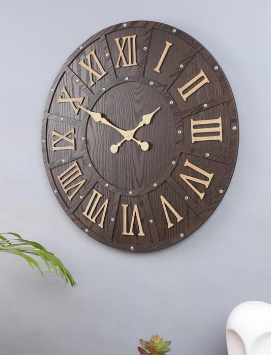 Round Engineered Wood Roman Numeral Wall Clock With Leather coating || Wall Clock